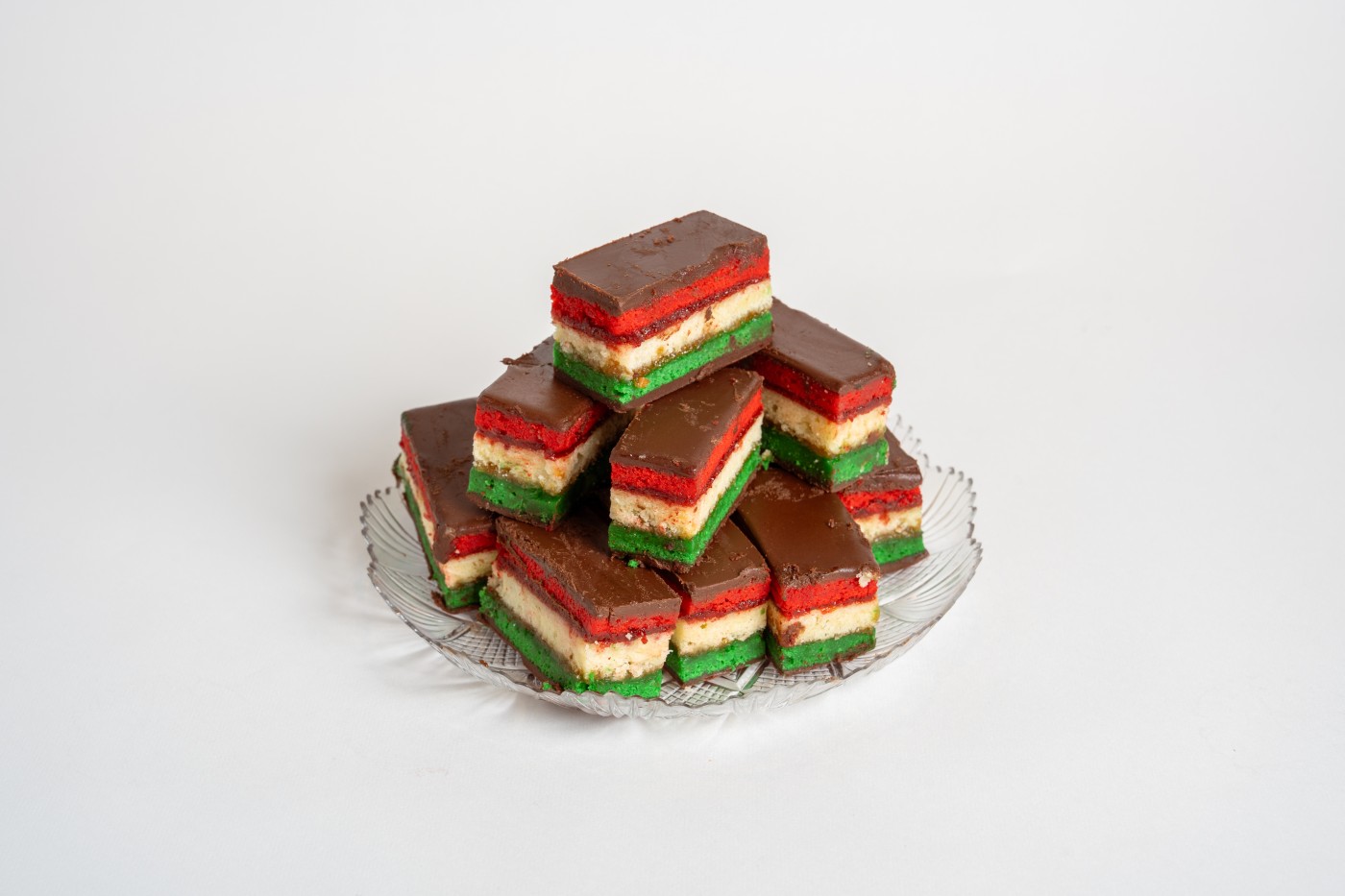 Experience the timeless elegance of traditional Italian rainbow cookies with our premium 1 lb rainbow cookie tray from Mia’s Bakery. These exquisite layered treats showcase the perfect harmony of flavors and textures that have made rainbow cookies a beloved classic for generations.
