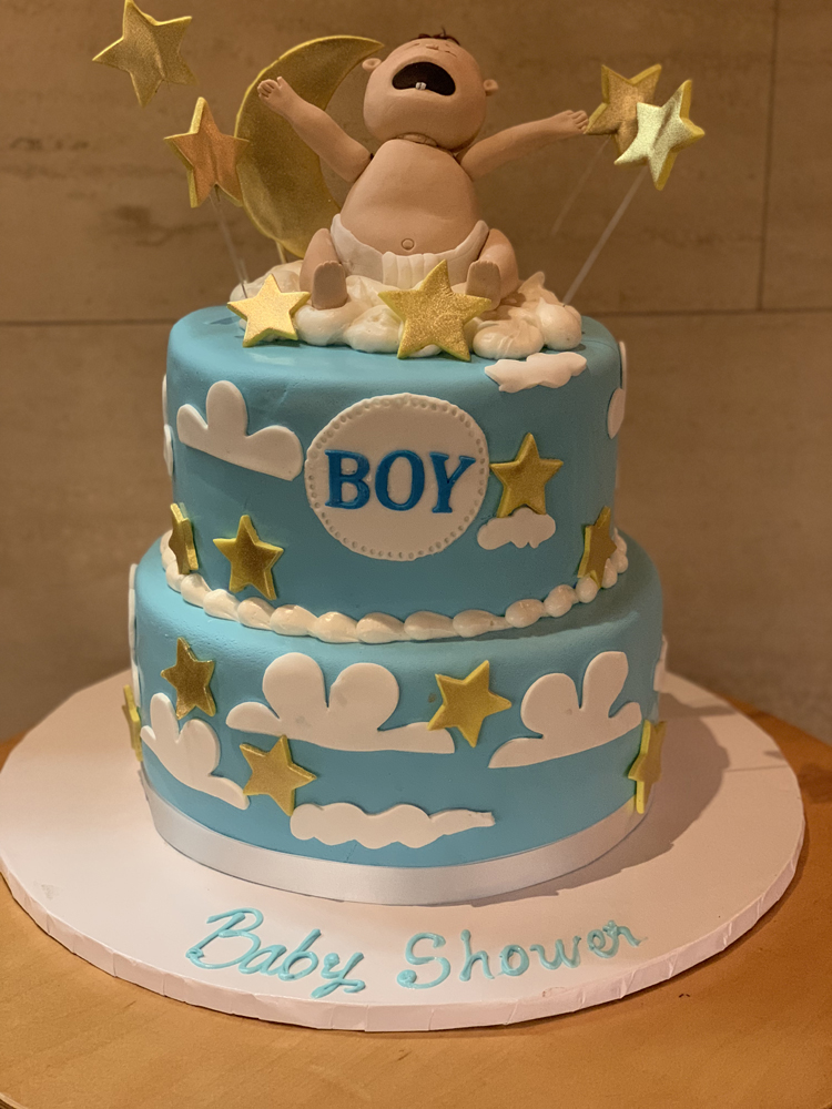 Indulge in the exquisite "Baby Boy Stars Cake" Custom Cake by Mia's Bakery. Explore our delightful creations tailored just for you!