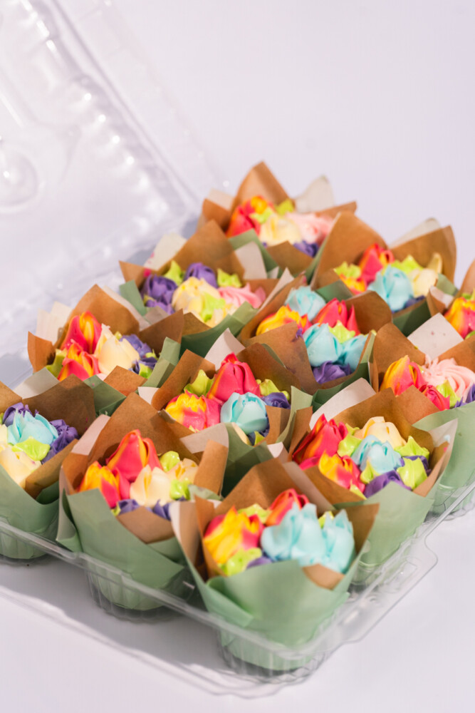 Elevate your Mother’s Day gifting with our spectacular 12-pack bouquet cupcakes, an edible garden that captures the beauty of spring flowers in delicious form. This generous dozen features an artful blend of decadent chocolate and velvety vanilla cupcakes, each crowned with intricate buttercream flowers that rival nature’s finest blooms.