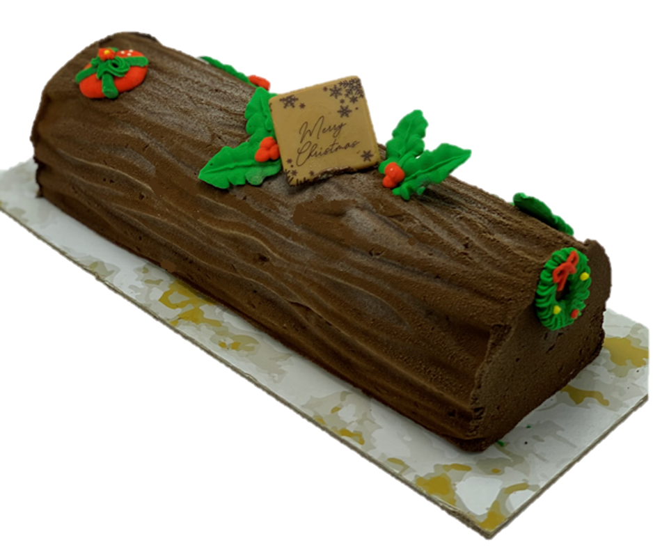 Each Christmas log cake is carefully hand-rolled and decorated to resemble a traditional Yule log, complete with intricate bark-like chocolate detailing. This stunning presentation makes it the perfect centerpiece for Christmas dinner, holiday parties, or special celebrations.