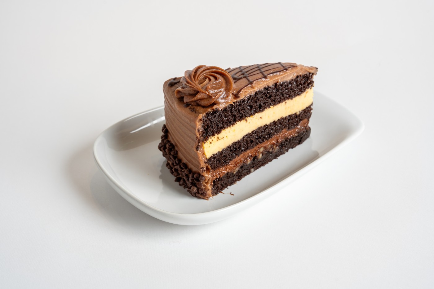 Our velvety chocolate mousse, whipped to airy perfection, provides a luxurious middle layer that’s both light and intensely satisfying. Made with high-quality dark chocolate, this silky mousse delivers a sophisticated chocolate profile that true connoisseurs will appreciate.